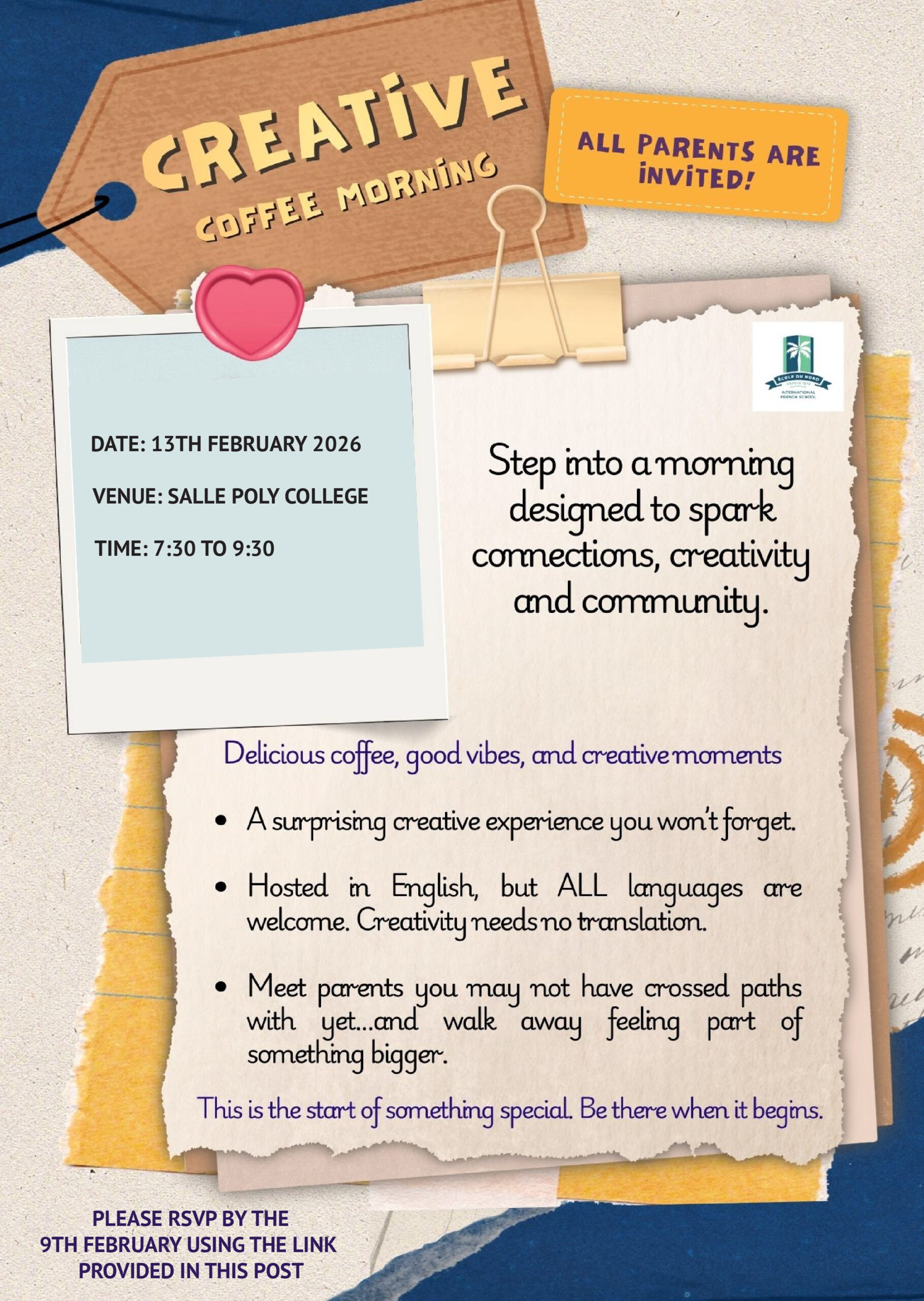 Nous avons le plaisir d’inviter les futures familles souhaitant nous rejoindre à une présentation et une visite de notre école française internationale en présence de la Direction et du Comité de Gestion de l’Ecole du Nord.